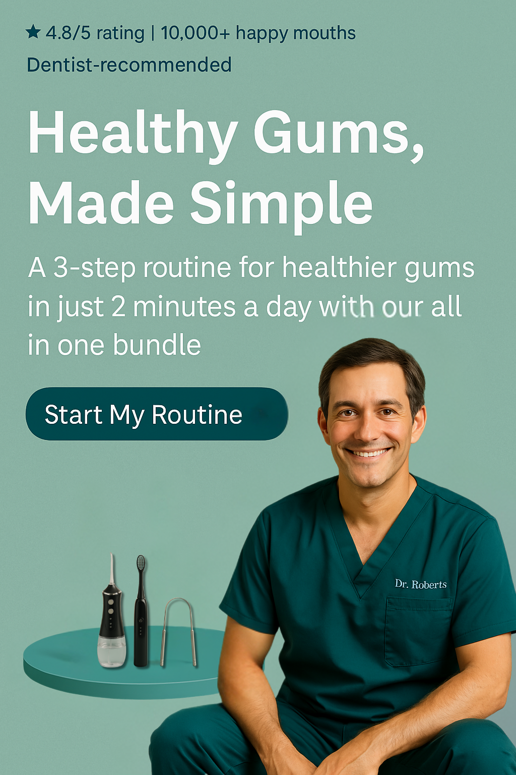 Not at all. We designed this bundle to make your routine as simple and efficient as possible. Each device is user-friendly and quick to use—your water flosser and toothbrush can be incorporated into a routine that takes just minutes, and the tongue scraper adds an extra boost for fresh breath. They complement each other perfectly, ensuring you cover every part of your oral care without any extra hassle.